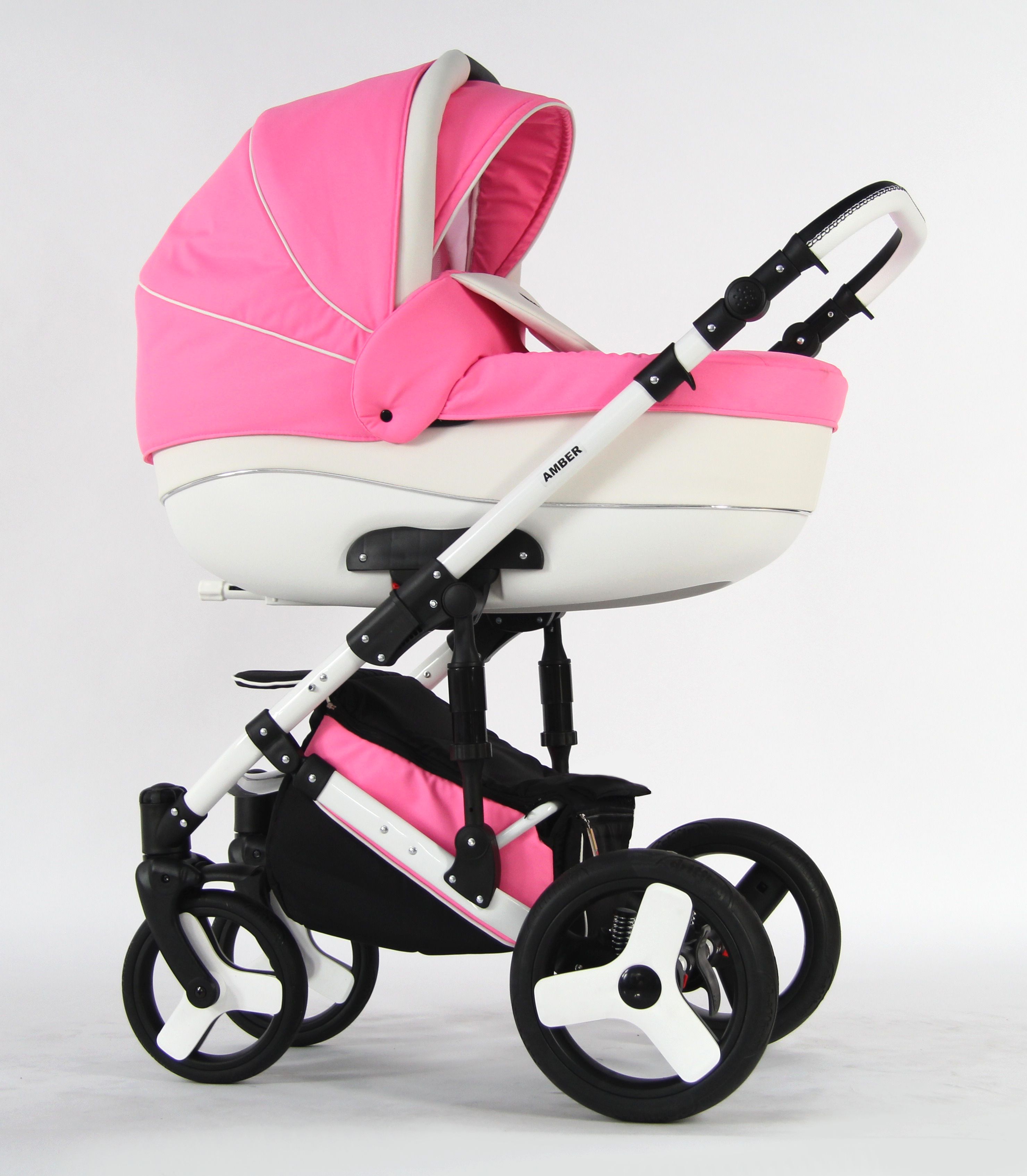 AMADEUS Коляска " Amber" 2 в 1 (03)розовый, модульная рама, перед.поворот.колёса и дополнительный амортизатор,дожд., моск. сетка Новинка!