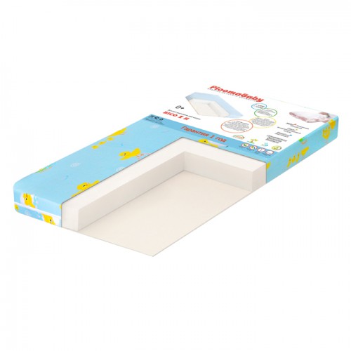 Размер: 120х60х6см Детский беспружинный ортопедический двусторонний матрас средней степени жесткости. Сторона А и Б - «Hollcon» средней плотности (6 см). Съемный чехол на молнии (бязь).