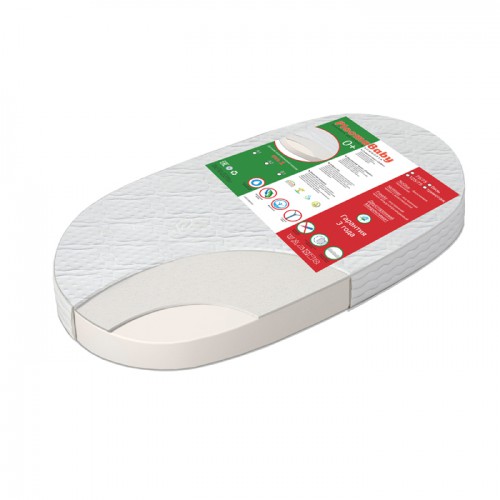 "Детский беспружинный ортопедический двусторонний овальный матрас 125*65 средней степени жесткости. Сторона А и Б - «Hollcon» средней плотности жёсткости (10 см). Съемный стеганый чехол на молнии (100 % хлопок). Внутренний чехол с влагозащитой.