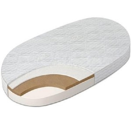 Детский беспружинный ортопедический двусторонний овальный матрас 125*75 средней степени жесткости. Сторона А — жесткая за счет кокосовой плиты 1 см, сторона Б - «Hollcon» средней плотности жёсткости (10 см). Съемный стеганый чехол на молнии (ткитаж). Внутренний чехол с влагозащитой.