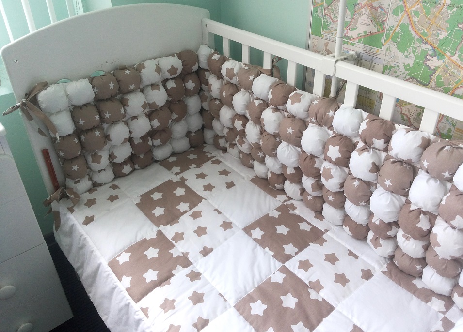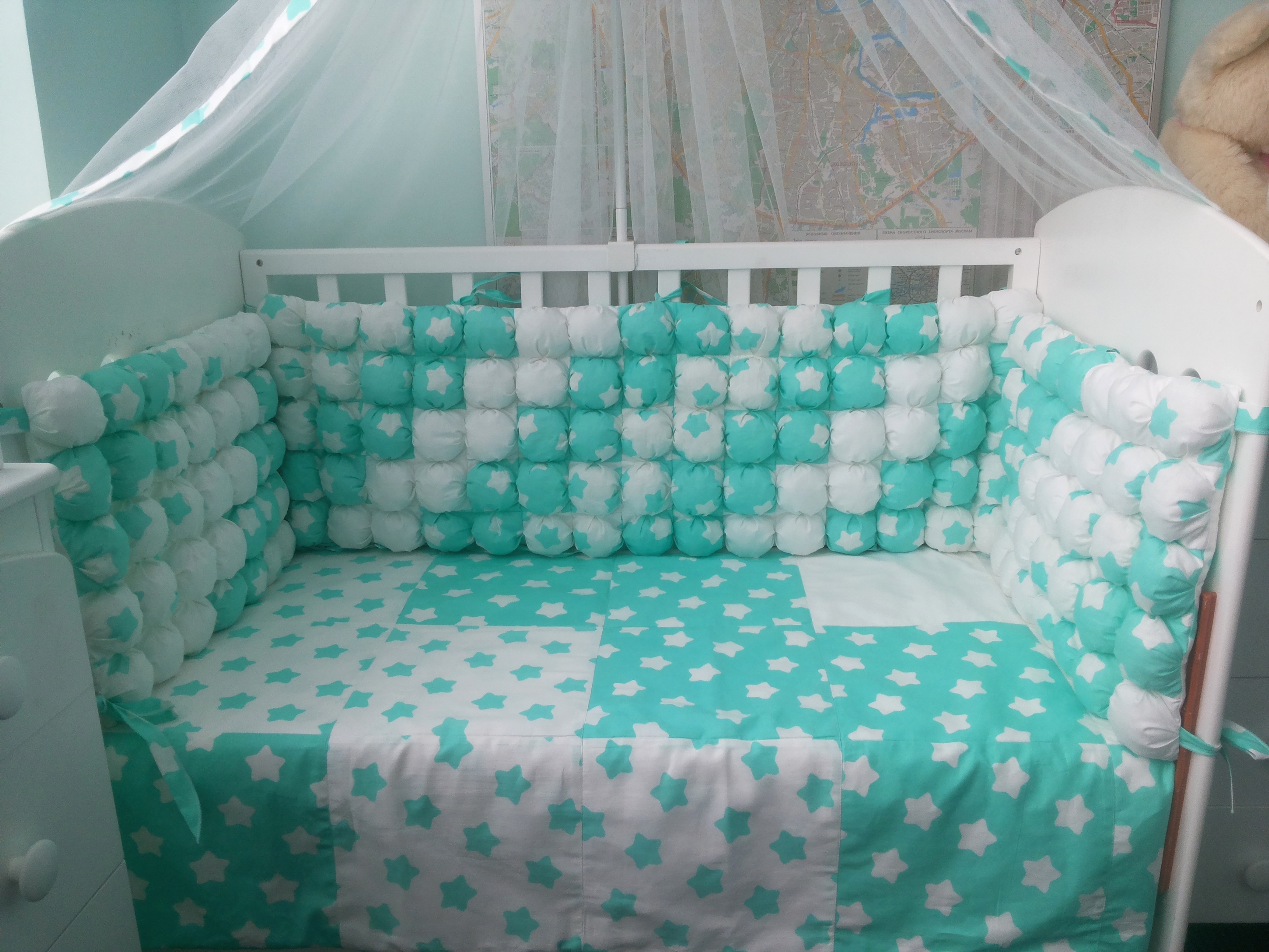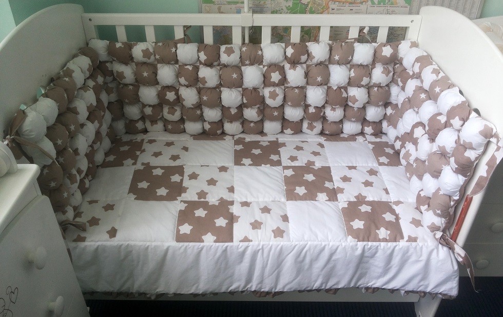 •Бампер 4 части, на весь периметр (360х40) Материал: бязь (100% хлопок) Наполнитель: холлкон 500 г/м?