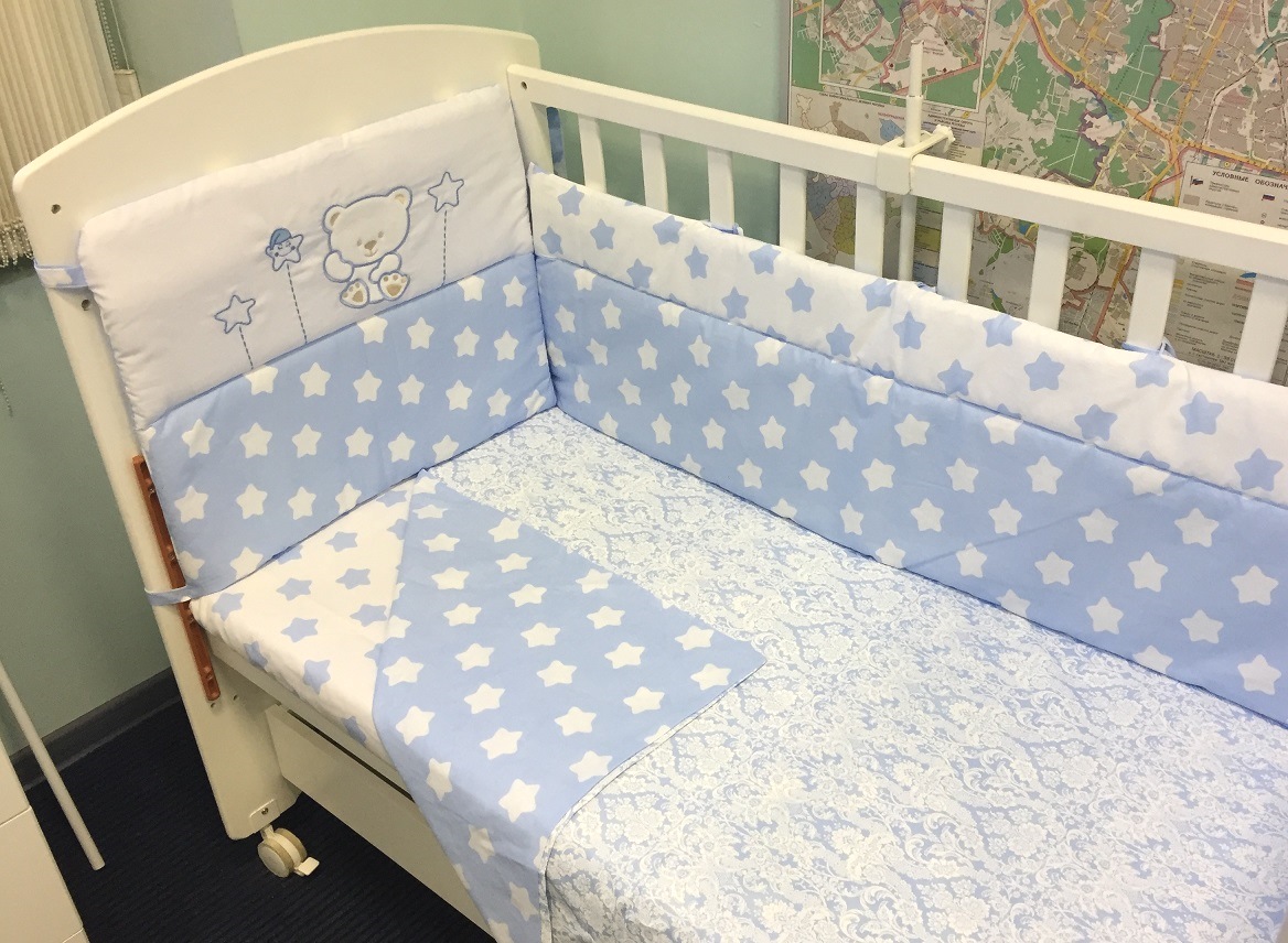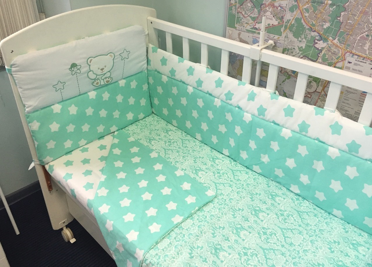 •Бампер Размер: 360х36 см. на весь периметр кроватки Раздельный, состоит из 4-х частей Материал: бязь (100% хлопок) Наполнитель: холлкон 300 г/м?