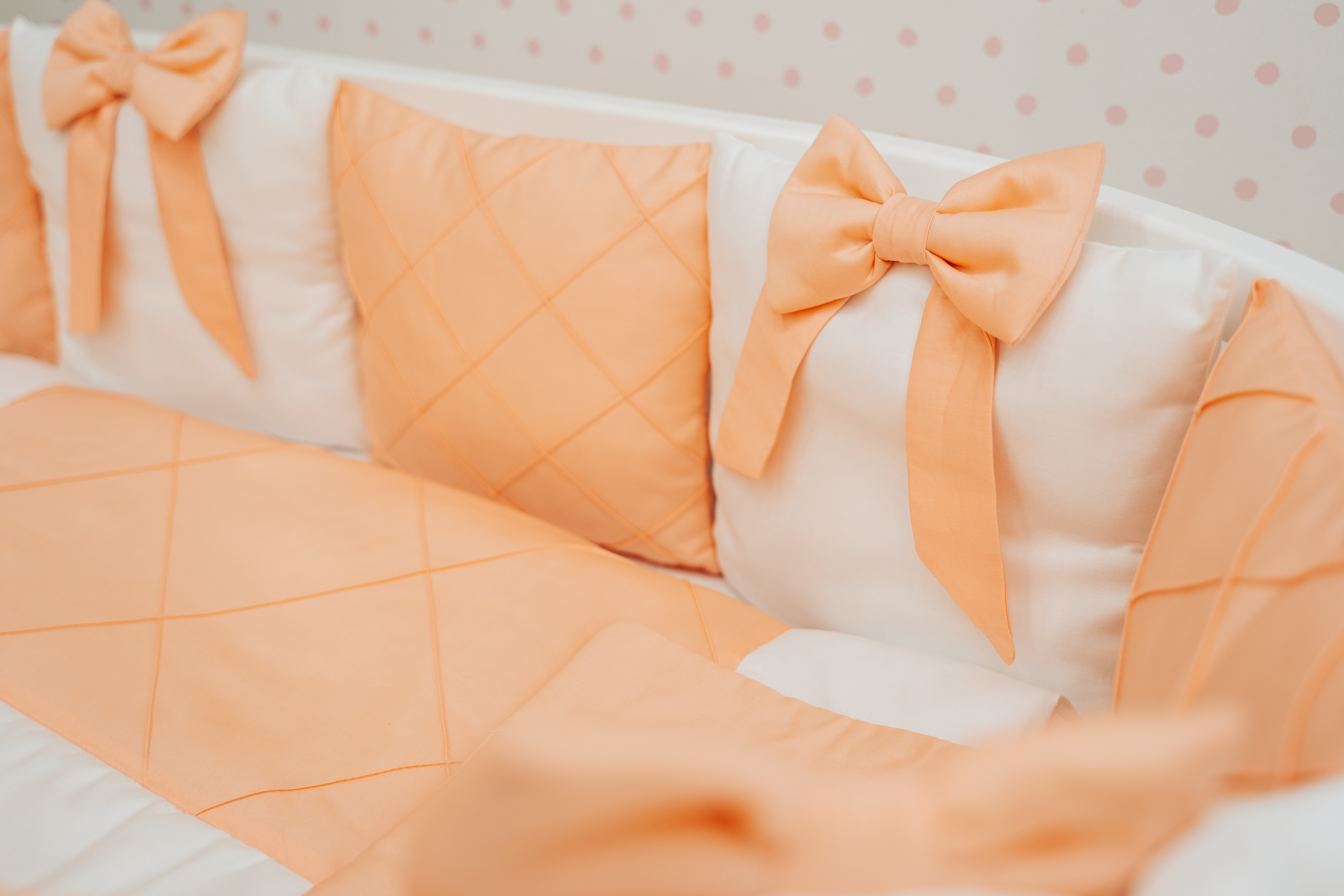 • 12 бортов-подушек со съёмными чехлами на молнии, размерами 32*30см. - универсальный борт на любой тип кроватки.