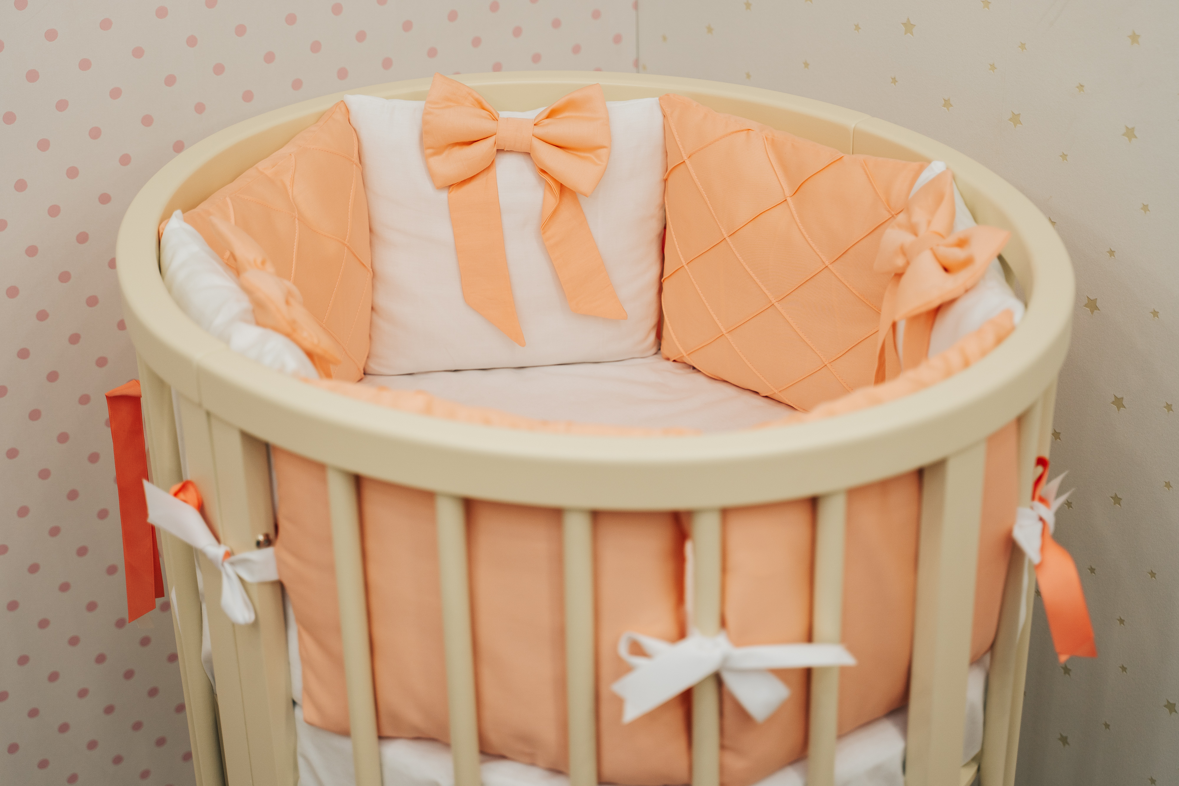 Сатин премиум класса, сдержанный нежный дизайн, пастельные цвета идеальный комплект для девочки! Данный комплект бортов имеет съёмные чехлы на молнии, что очень практично в эксплуатации.