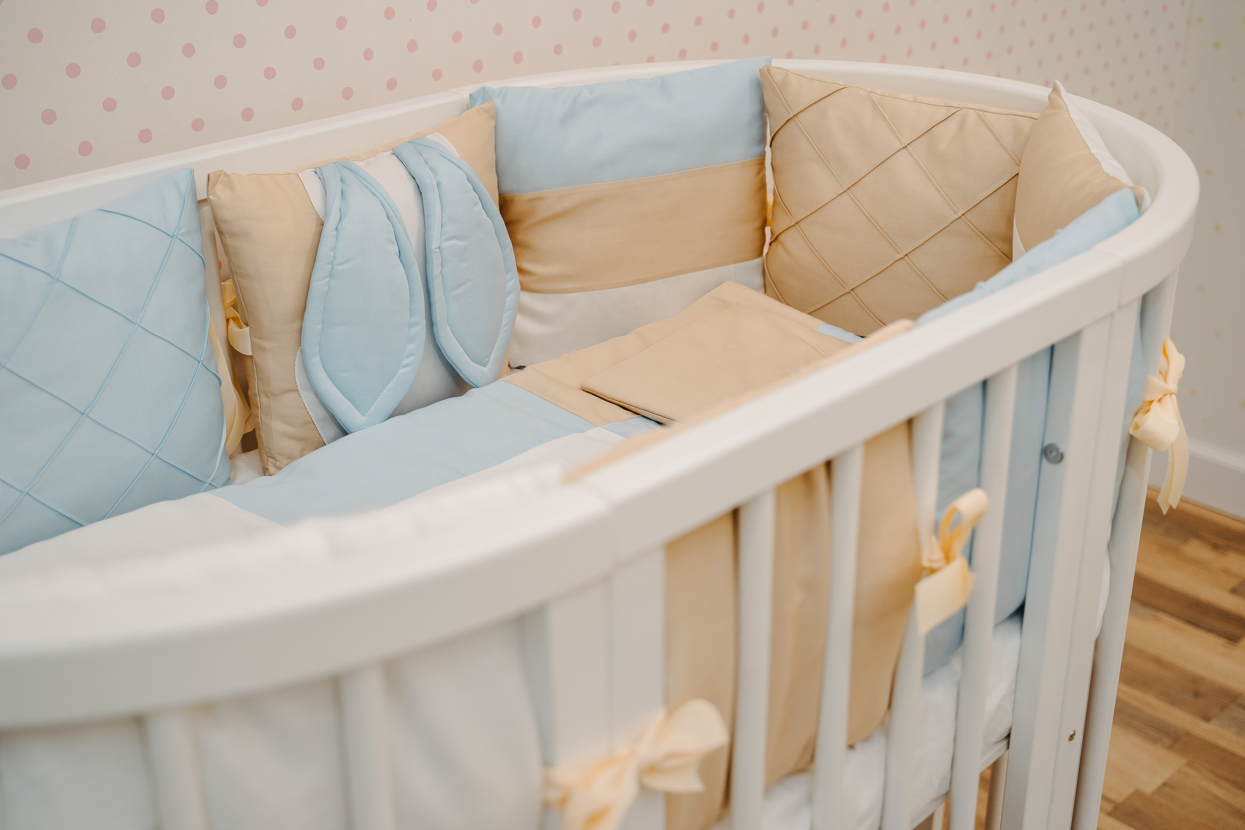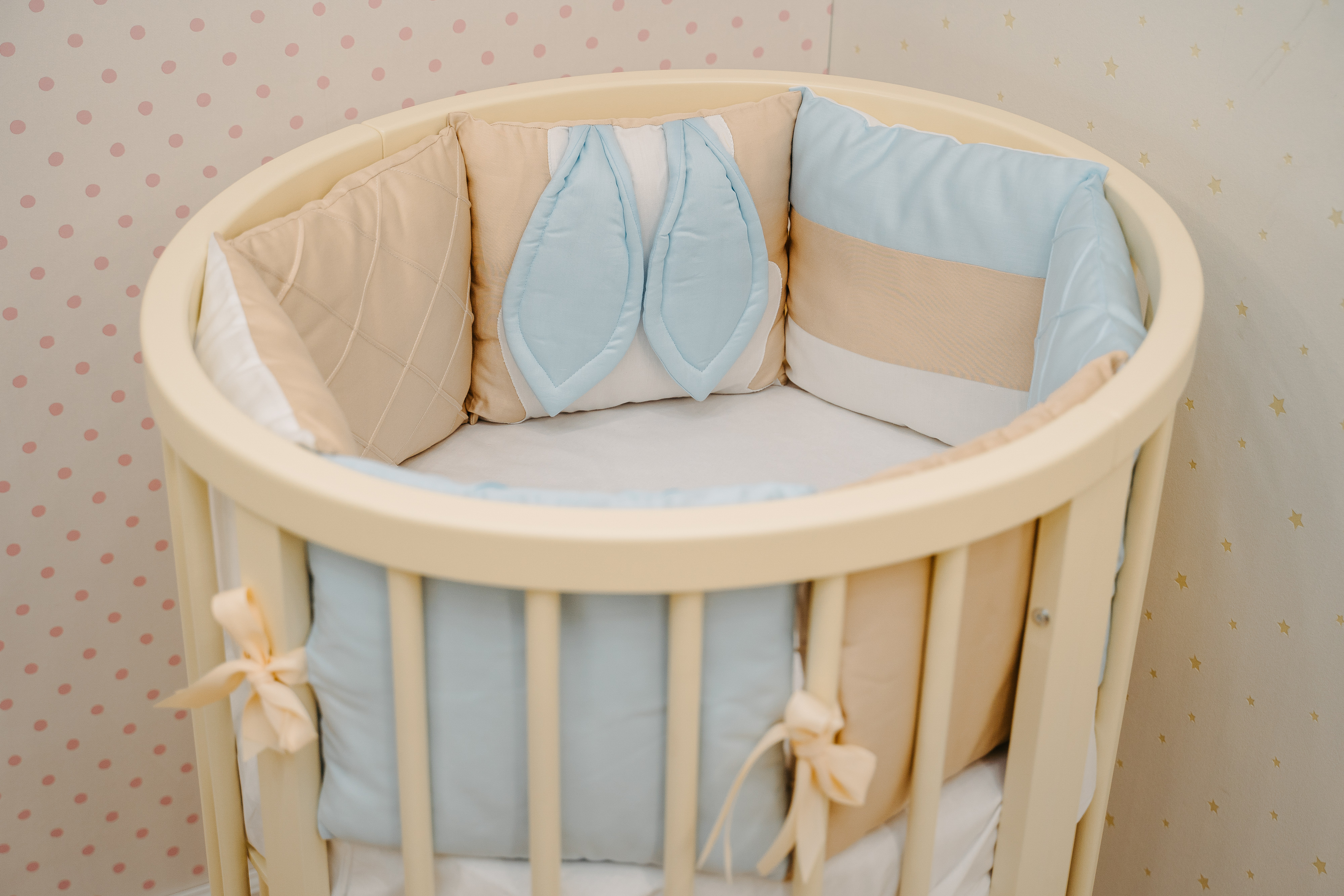 • 12 бортов-подушек со съёмными чехлами на молнии, размерами 32*30см. - универсальный борт для любого типа кроватки