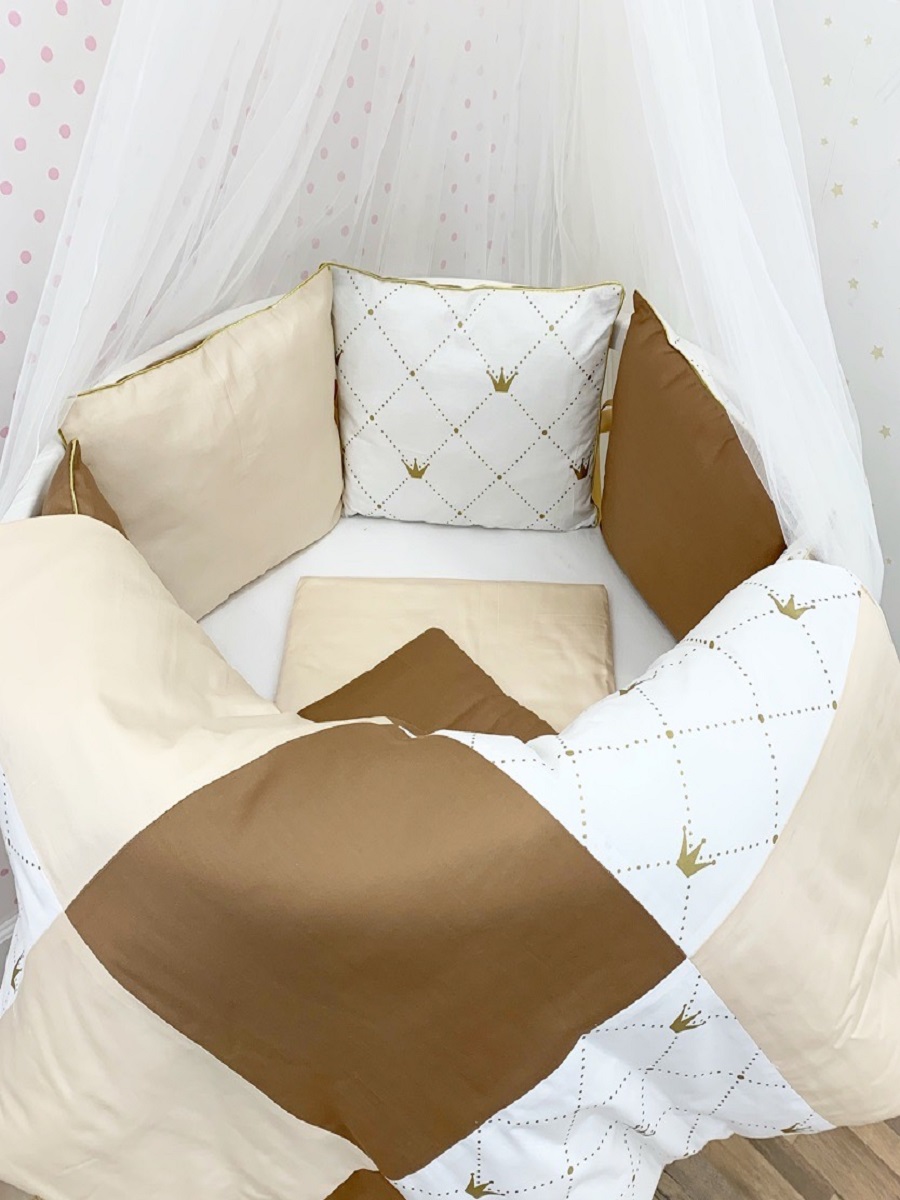 • 12 бортов-подушек со съёмными чехлами на молнии, размерами 32*30см. - универсальный борт для любого типа кроватки